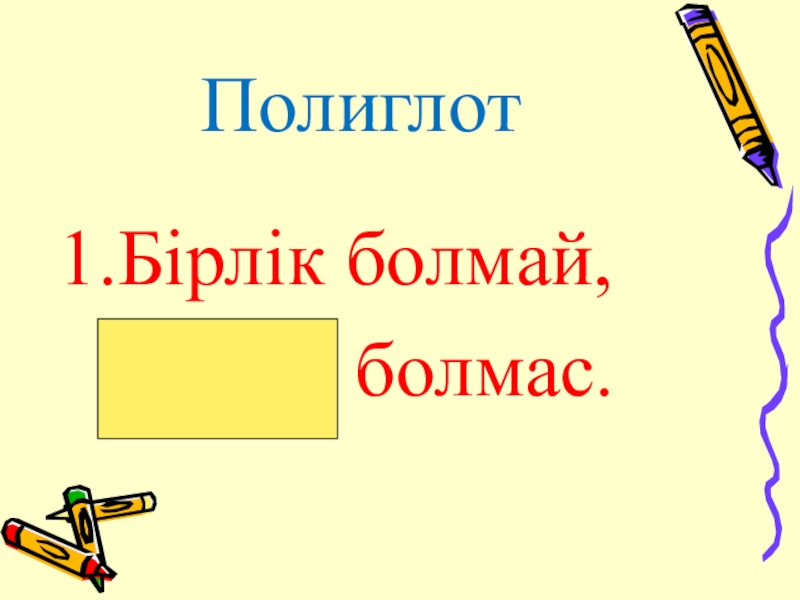 Полиглот1.Бірлік болмай,  тірлік болмас.