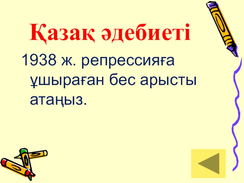Қазақ әдебиеті1938 ж. репрессияға ұшыраған бес арысты атаңыз.