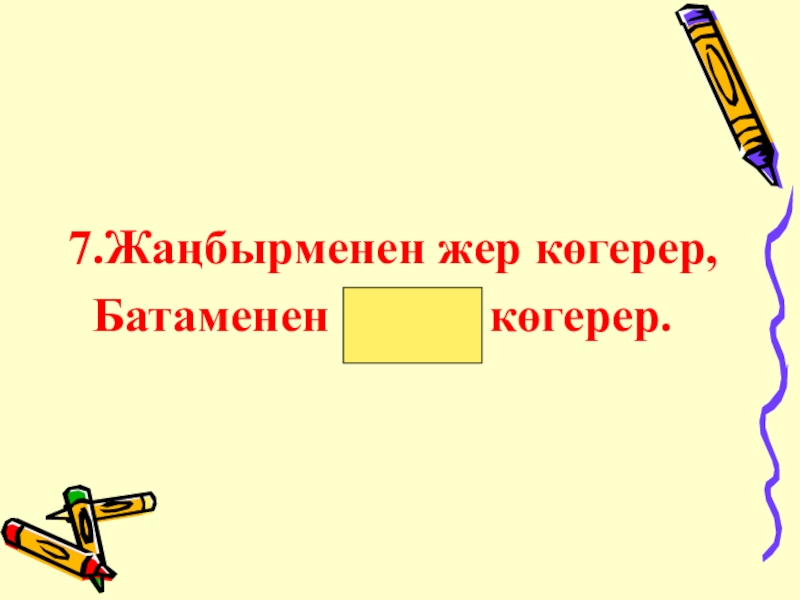 7.Жаңбырменен жер көгерер, Батаменен  ел   көгерер.