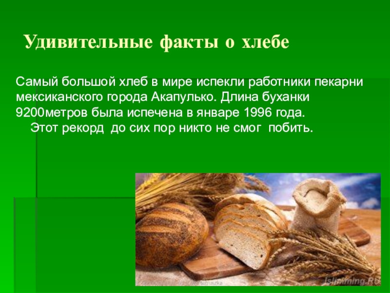 мексиканского города Акапулько. Длина буханки 9200метров была испечена в январе 1996 года.
