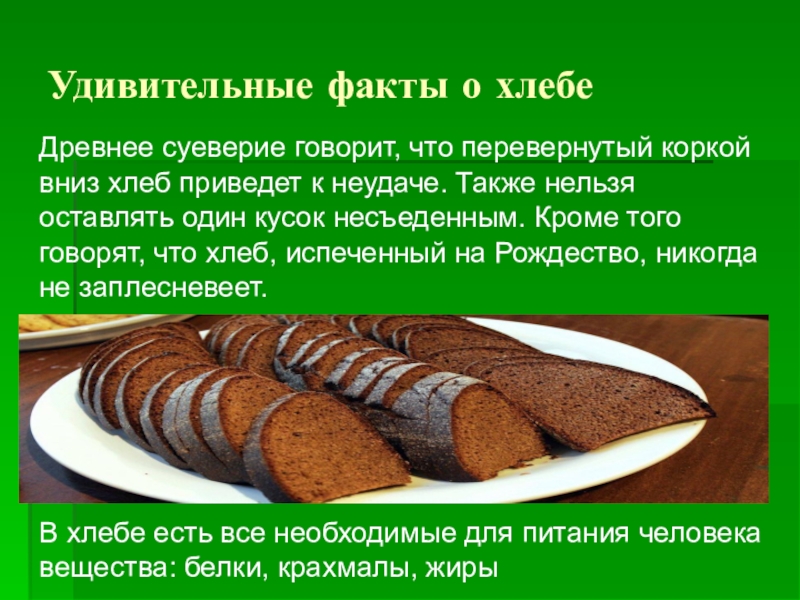 В хлебе есть все необходимые для питания человека вещества: белки, крахмалы, жиры