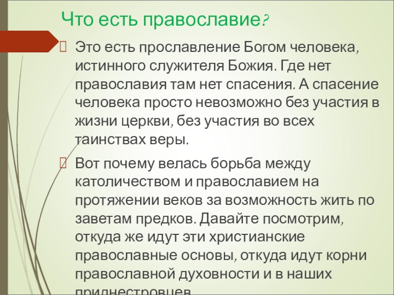 Вот почему велась борьба между католичеством и православием на протяжении веков за возможность жить по заветам предков. Давайте посмотрим, откуда же идут эти христианские православные основы, откуда идут корни православной духовности и в наших приднестровцев.