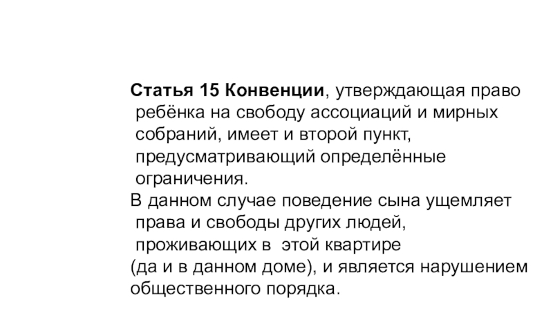 Слайд 13Статья 15 Конвенции, утверждающая право