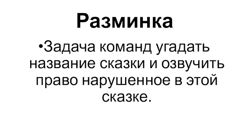 Задача команд угадать название сказки и озвучить право нарушенное в