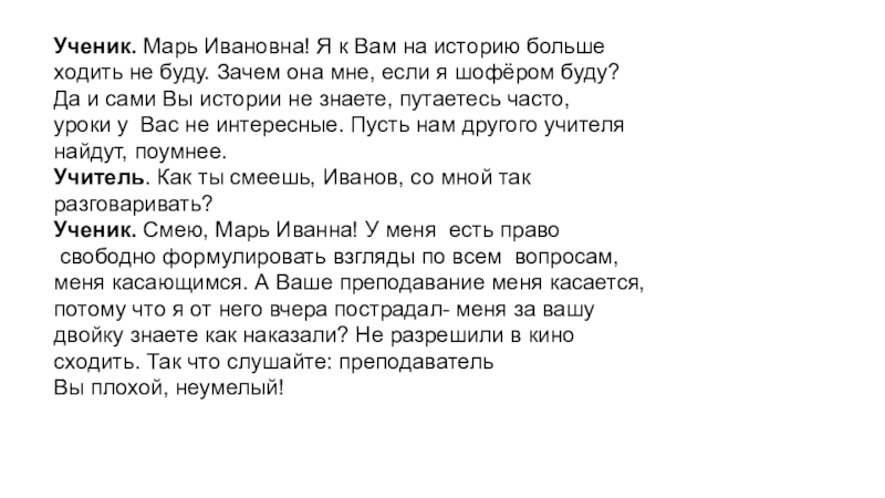 Слайд 14Ученик. Марь Ивановна! Я к Вам на историю больше