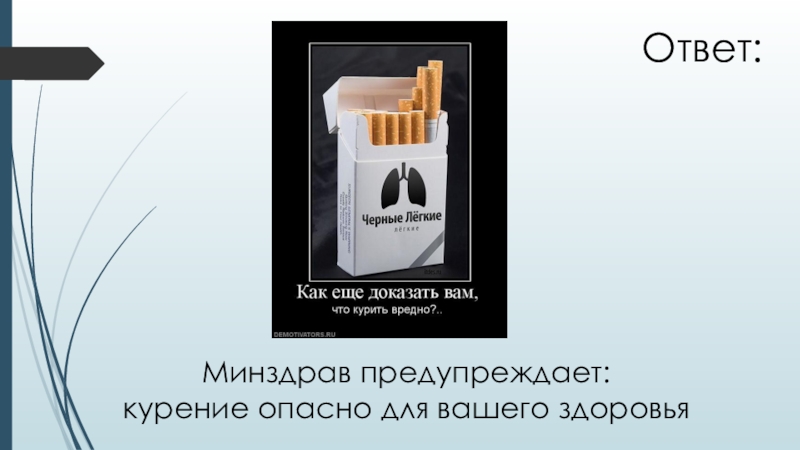 Слайд 421. Минздрав предупреждает: курение опасно для вашего здоровья;