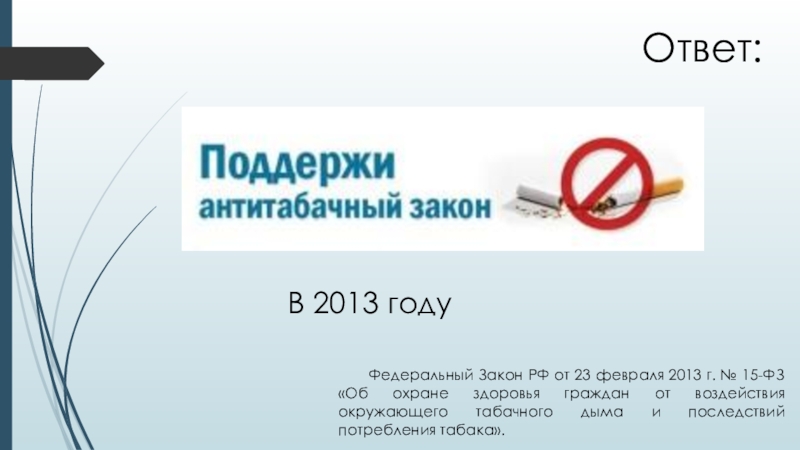 15-ФЗ «Об охране здоровья граждан от воздействия окружающего табачного дыма и последствий потребления табака».