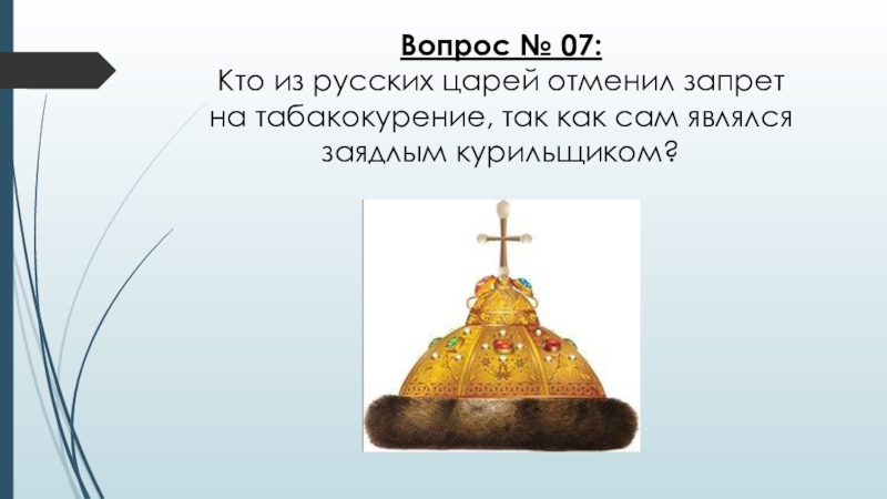 сурово: в 1634 году после одного пожара, возникшего вследствие неосторожного курения. Царь издал приказ, в котором угрожал, что курильщиков будут наказывать на первый раз шестьюдесятью палочными ударами по подошвам, а во второй раз будут образовать нос. Курение и нюханье табака жестоко преследовалось.