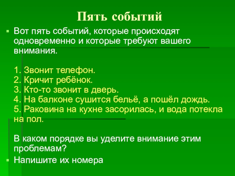 Вот пять событий, которые происходят одновременно и которые требуют вашего