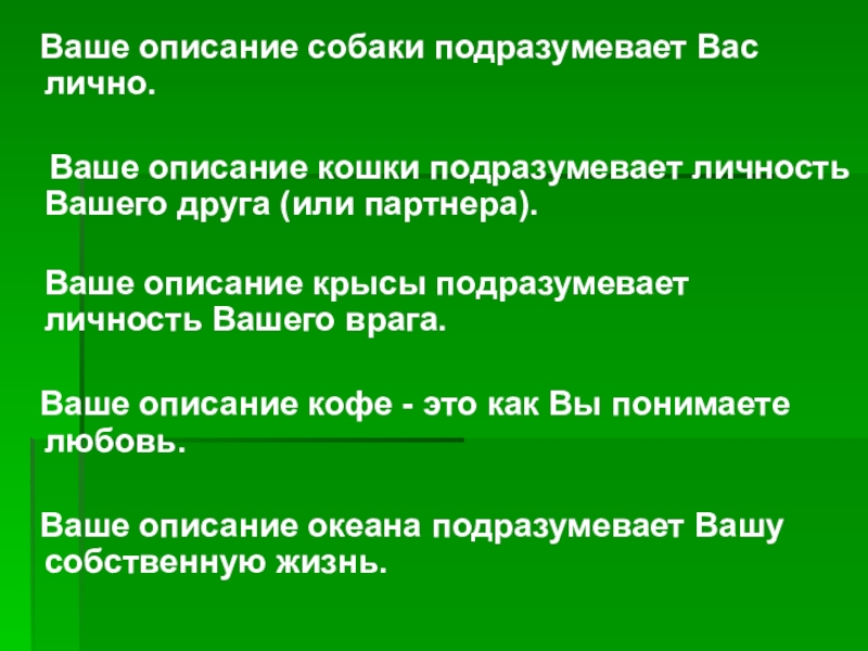 Слайд 13 Ваше описание собаки подразумевает Вас лично.