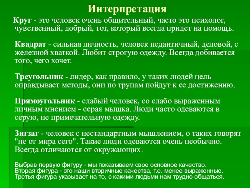 Выбрав первую фигуру - мы показываем свое основное качество.
