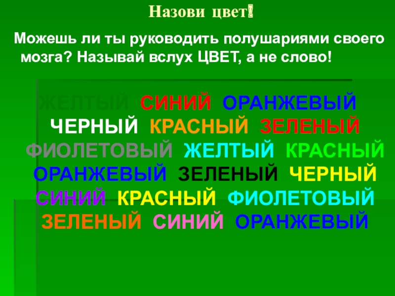 твоего мозга старается назвать цвет,