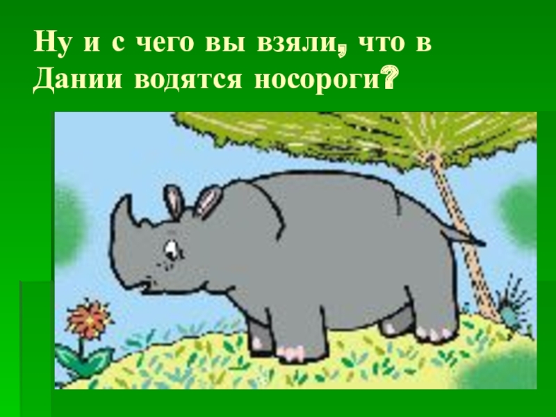 Слайд 3Ну и с чего вы взяли, что в Дании водятся носороги?
