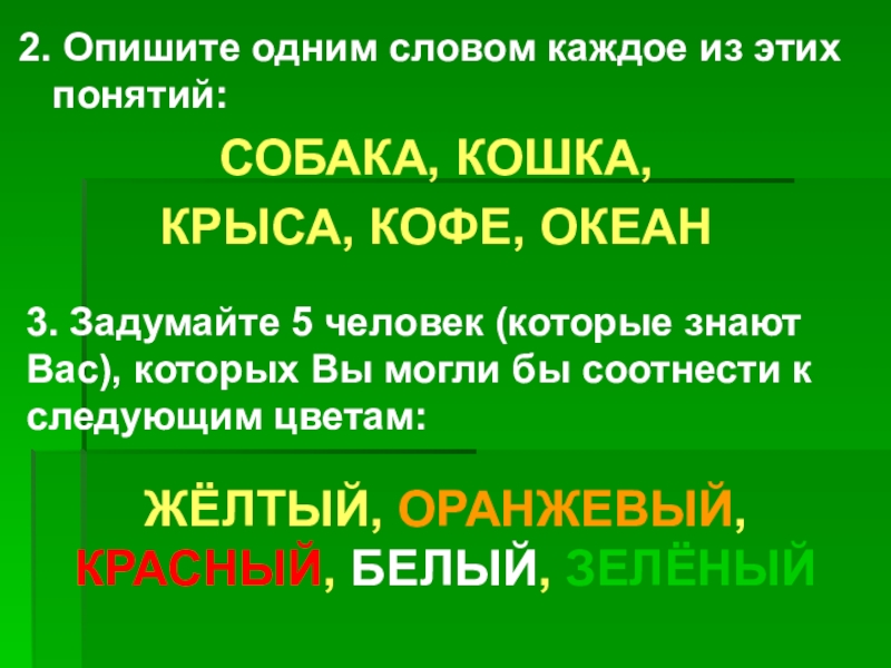 Слайд 112. Опишите одним словом каждое из этих понятий: