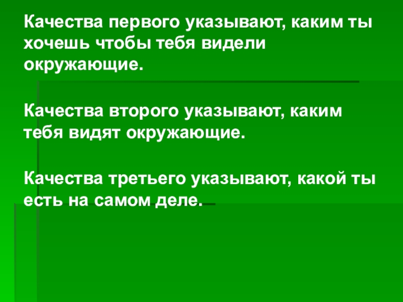 Слайд 7 Качества первого указывают, каким ты хочешь чтобы тебя видели