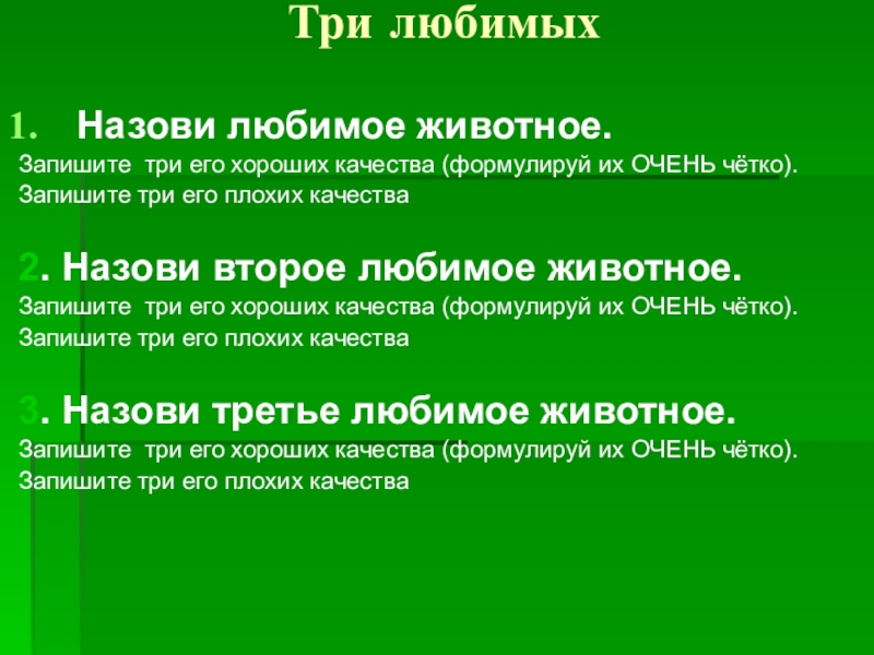 Запишите три его хороших качества (формулируй их ОЧЕНЬ чётко).