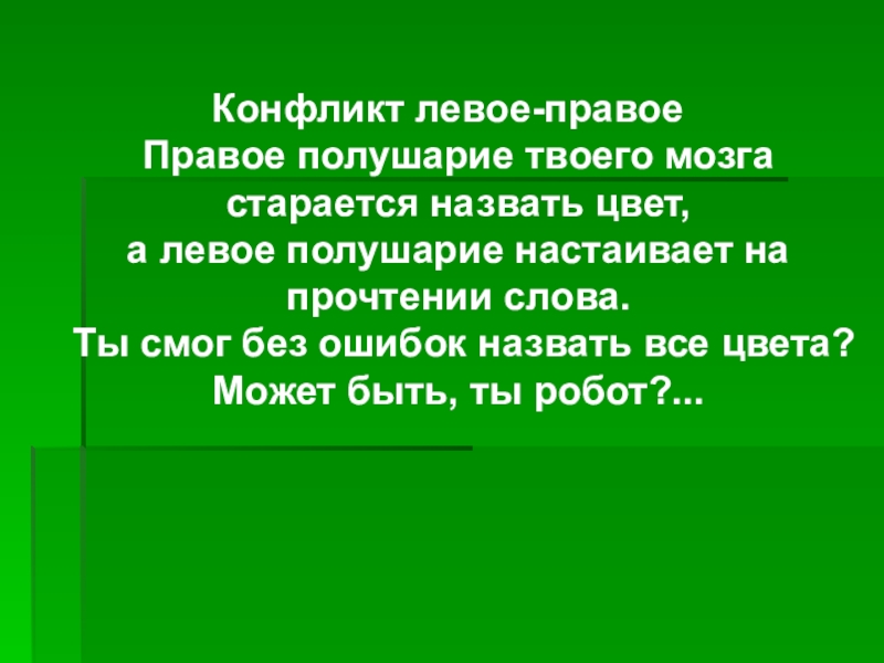 а левое полушарие настаивает на прочтении слова.