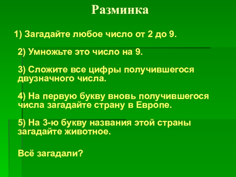 1) Загадайте любое число от 2 до 9.