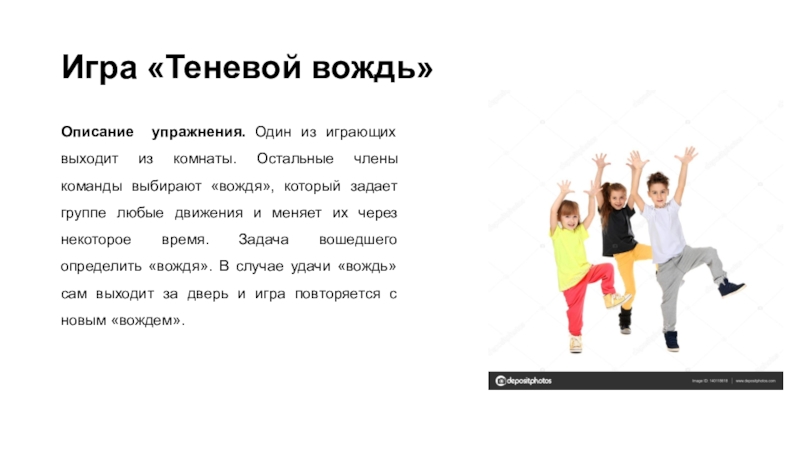 члены команды выбирают «вождя», который задает группе любые движения и меняет их через некоторое время. Задача вошедшего определить «вождя». В случае удачи «вождь» сам выходит за дверь и игра повторяется с новым «вождем».