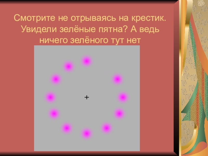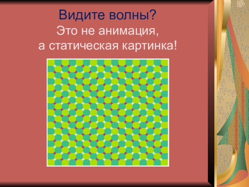 Не отрывая взгляда от центра круга, подвигайте головой. Возникла иллюзия, что узор вокруг шара сдвигается?