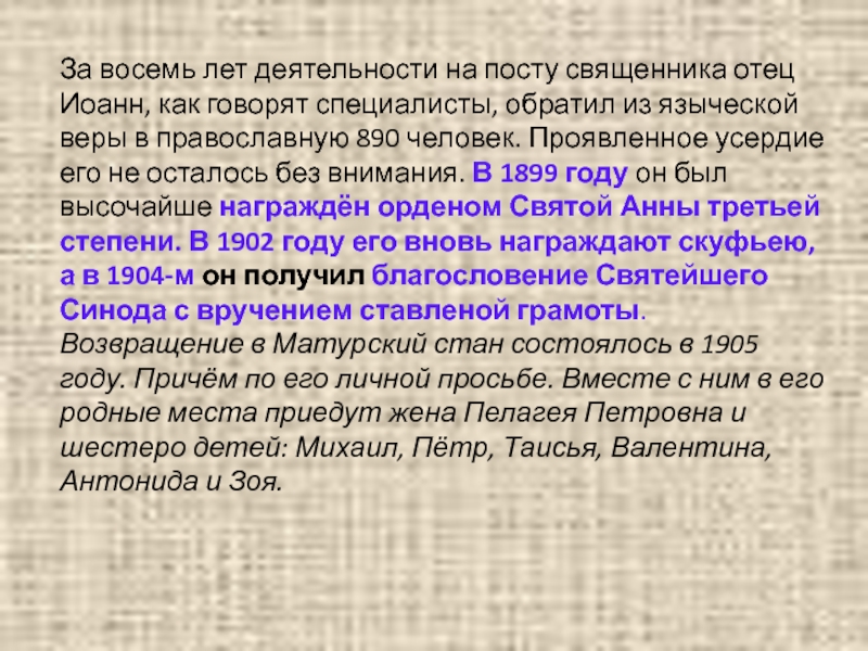 Слайд 13За восемь лет деятельности на посту священника отец Иоанн, как говорят