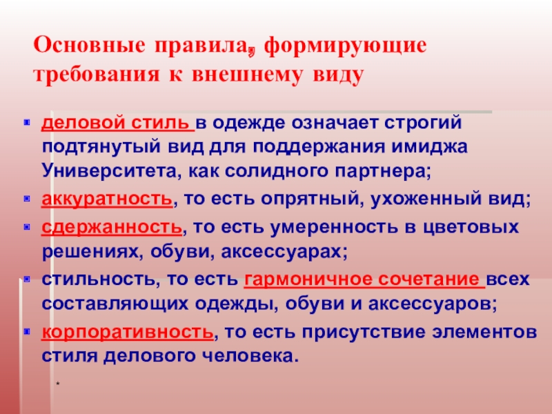 совершенствования понятия деловой этики и становления правил и основ морали внешнего вида в деловой среде учебного заведения.
