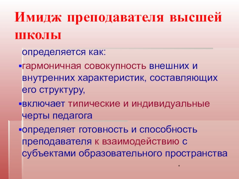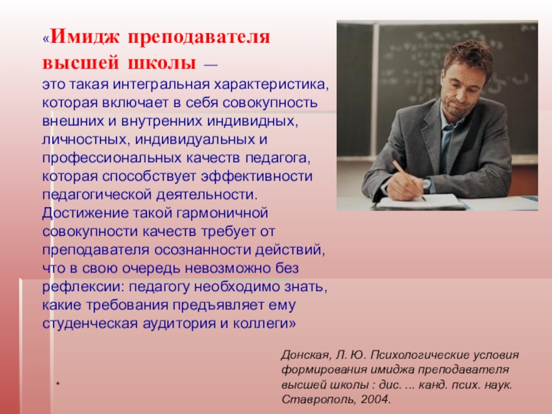 Донская, Л. Ю. Психологические условия формирования имиджа преподавателя высшей школы : дис. ... канд. псих. наук. Ставрополь, 2004.