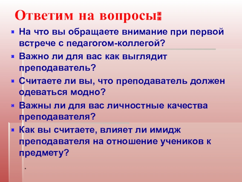 выделяют важным компонентов цвет одежды учителя и отмечают его влияние на подсознание учеников, коллег и родителей.