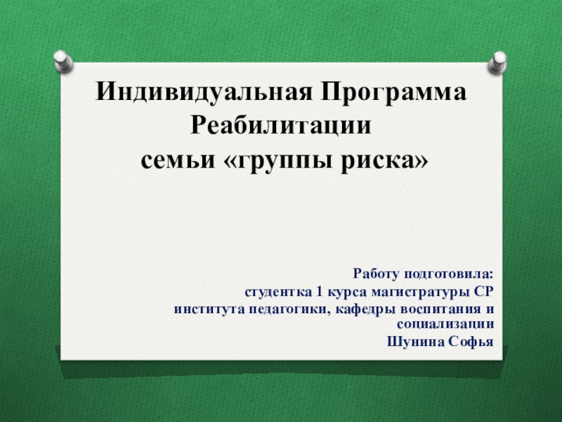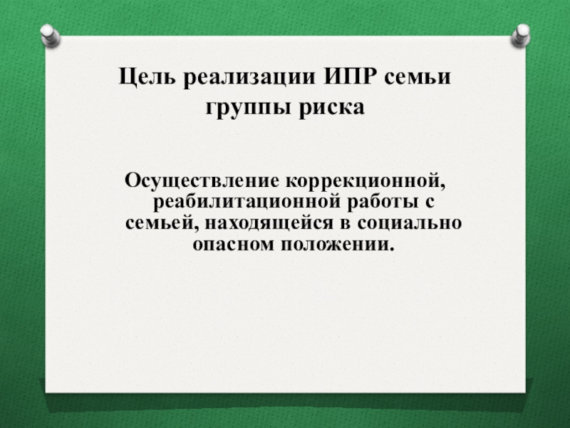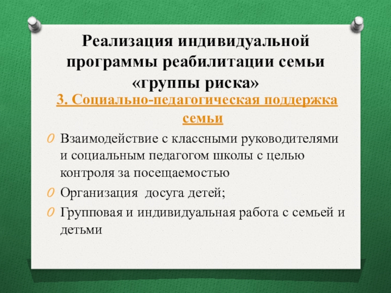 Слайд 13Реализация индивидуальной программы реабилитации семьи «группы риска»