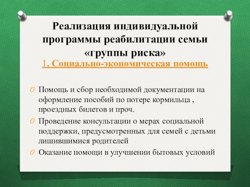 Слайд 10Реализация индивидуальной программы реабилитации семьи «группы риска»