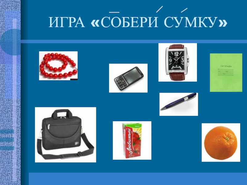 Слайд 8ИГРА «СОБЕРИ СУМКУ»