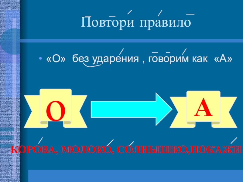 Повтори правило«О» без ударения , говорим как «А»оАКОРОВА, МОЛОКО, СОЛНЫШКО,ПОКАЖИ