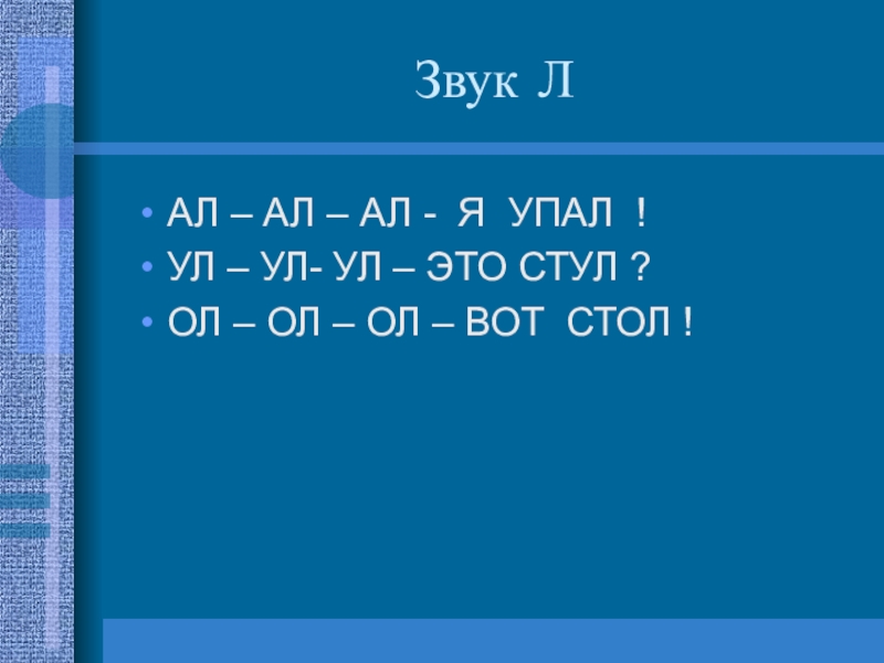 Звук ЛАЛ – АЛ – АЛ - Я УПАЛ !УЛ – УЛ- УЛ – ЭТО СТУЛ ?
