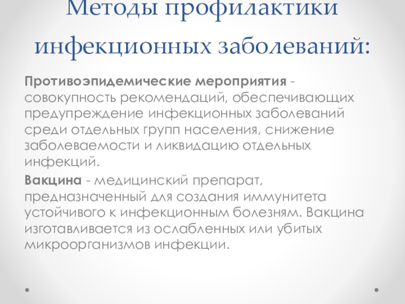 Слайд 7Методы профилактики инфекционных заболеваний: