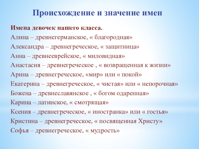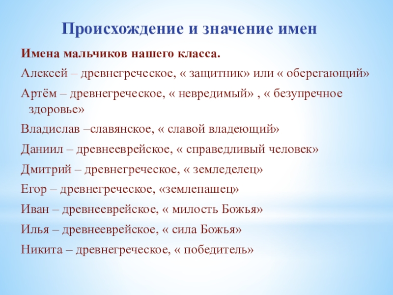Слайд 20Происхождение и значение имен