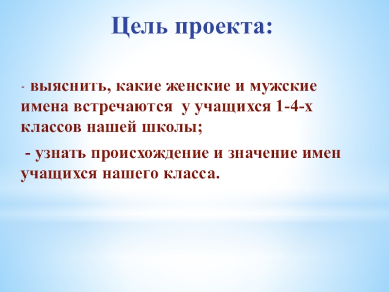 - выяснить, какие женские и мужские имена встречаются у учащихся