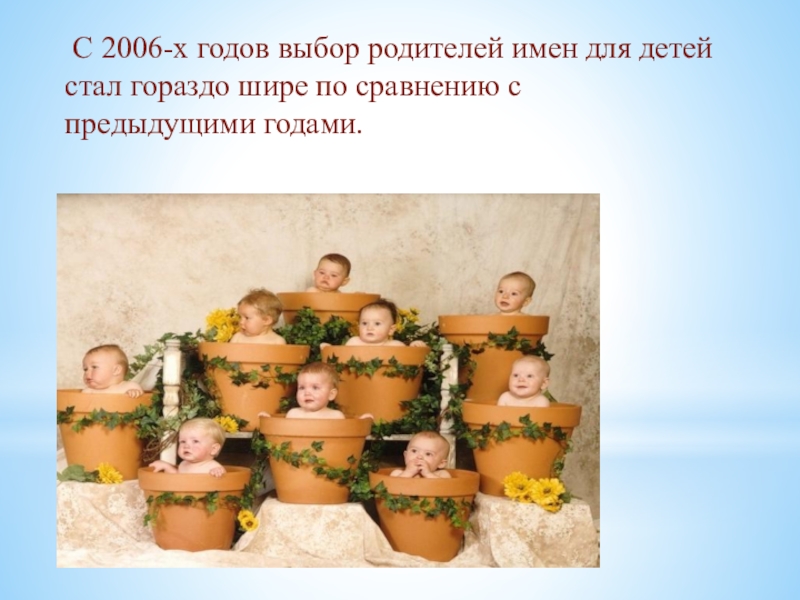 Слайд 13 С 2006-х годов выбор родителей имен для детей стал