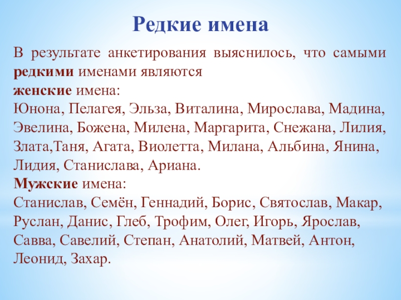 Слайд 12Редкие имена