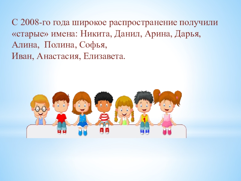 Слайд 15С 2008-го года широкое распространение получили «старые» имена: Никита, Данил, Арина,