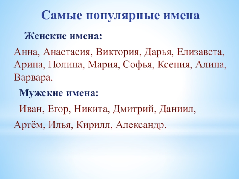 Слайд 14Самые популярные имена