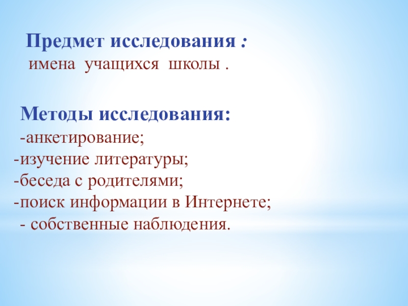 Слайд 19Исследование имен учащихся