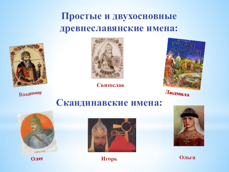 Слайд 10Простые и двухосновные древнеславянские имена:
