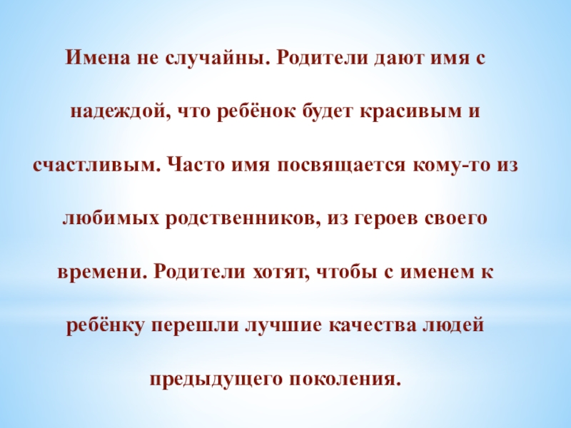 Слайд 27Имена не случайны. Родители дают имя с