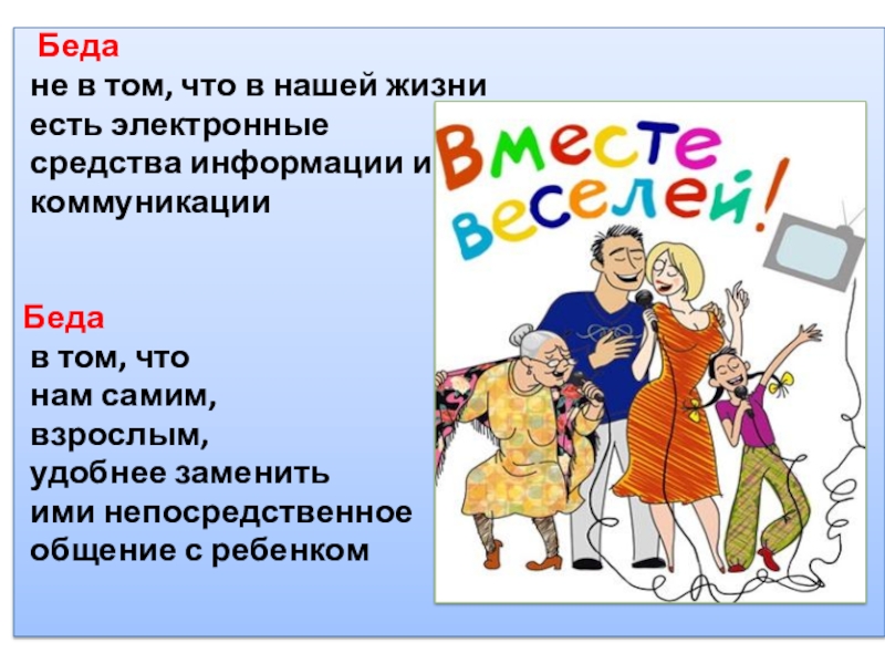 Беда не в том, что в нашей жизни есть электронные средства информации и коммуникацииБеда в том,