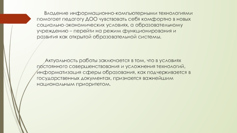 Слайд 2 Владение информационно-компьютерными технологиями помогает педагогу ДОО чувствовать себя