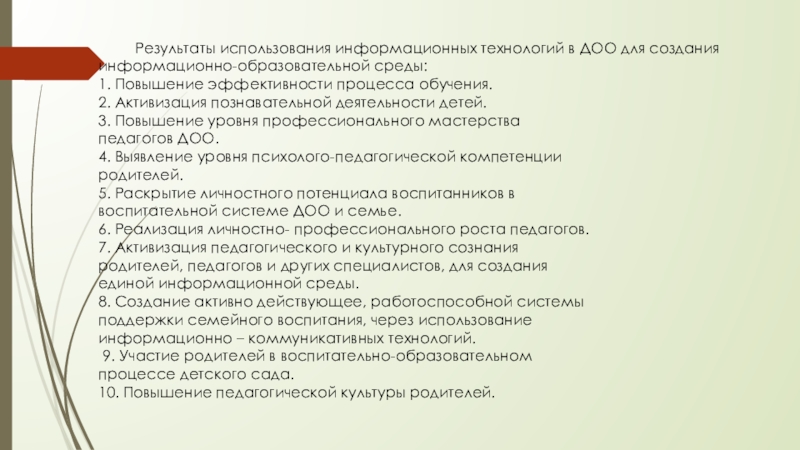 Слайд 10 Результаты использования информационных технологий в ДОО