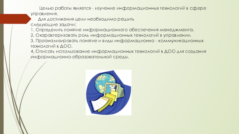 Слайд 4 Целью работы является - изучение информационных технологий