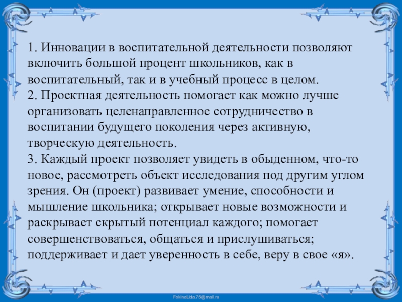 Инновационные технологии в воспитательной системе класса