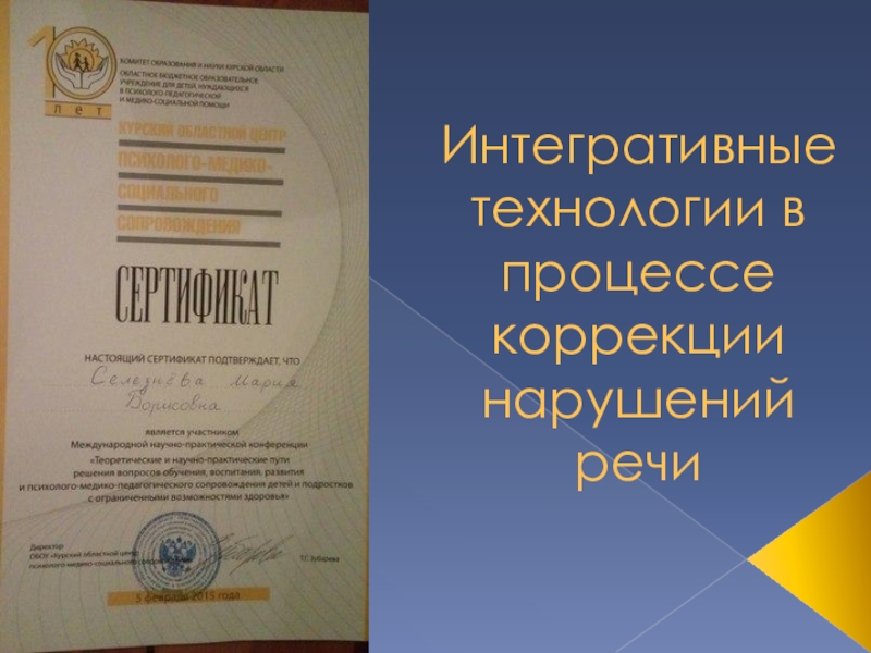 Слайд 1Интегративные технологии в процессе коррекции нарушений речи