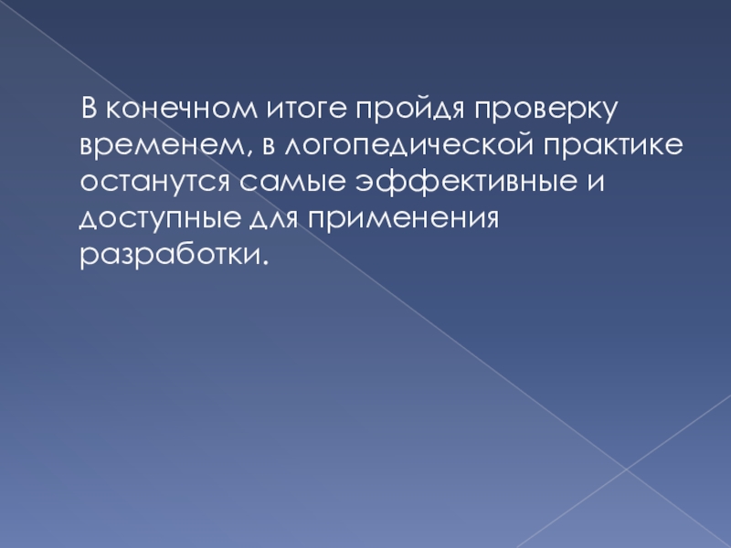 Слайд 15 В конечном итоге пройдя проверку временем, в логопедической практике останутся самые